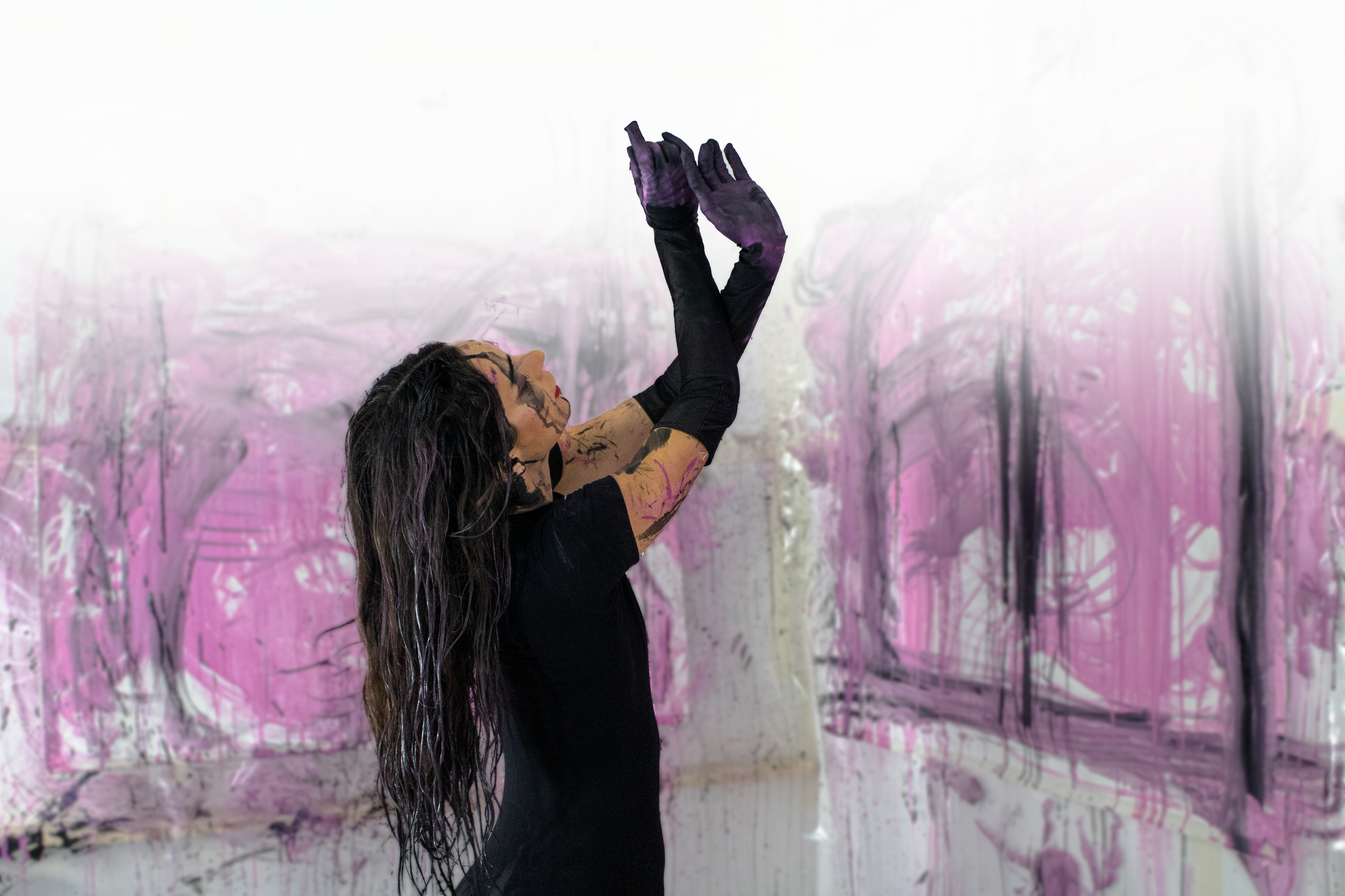 Due to this episode, Flora spent a significant amount of time away from the stage as theaters because they were closed. In response, she began painting out of the need to create, design, and express her art in an innovative way, complementing her aerial performance with a terrestrial one: this is why Art in Movement was born.